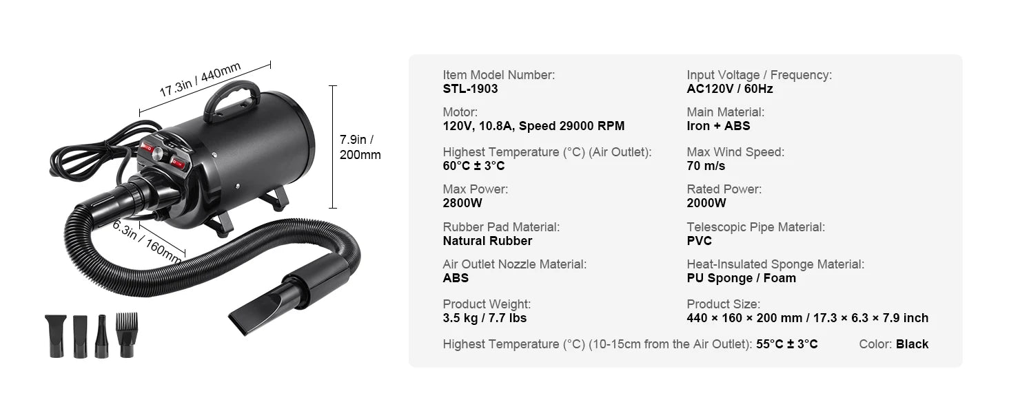 - Easy setup and comfortable handling: connect the hose to start instantly, with an anti-scald handle for safe grooming; ideal for home use, professional groomers, or shelters.